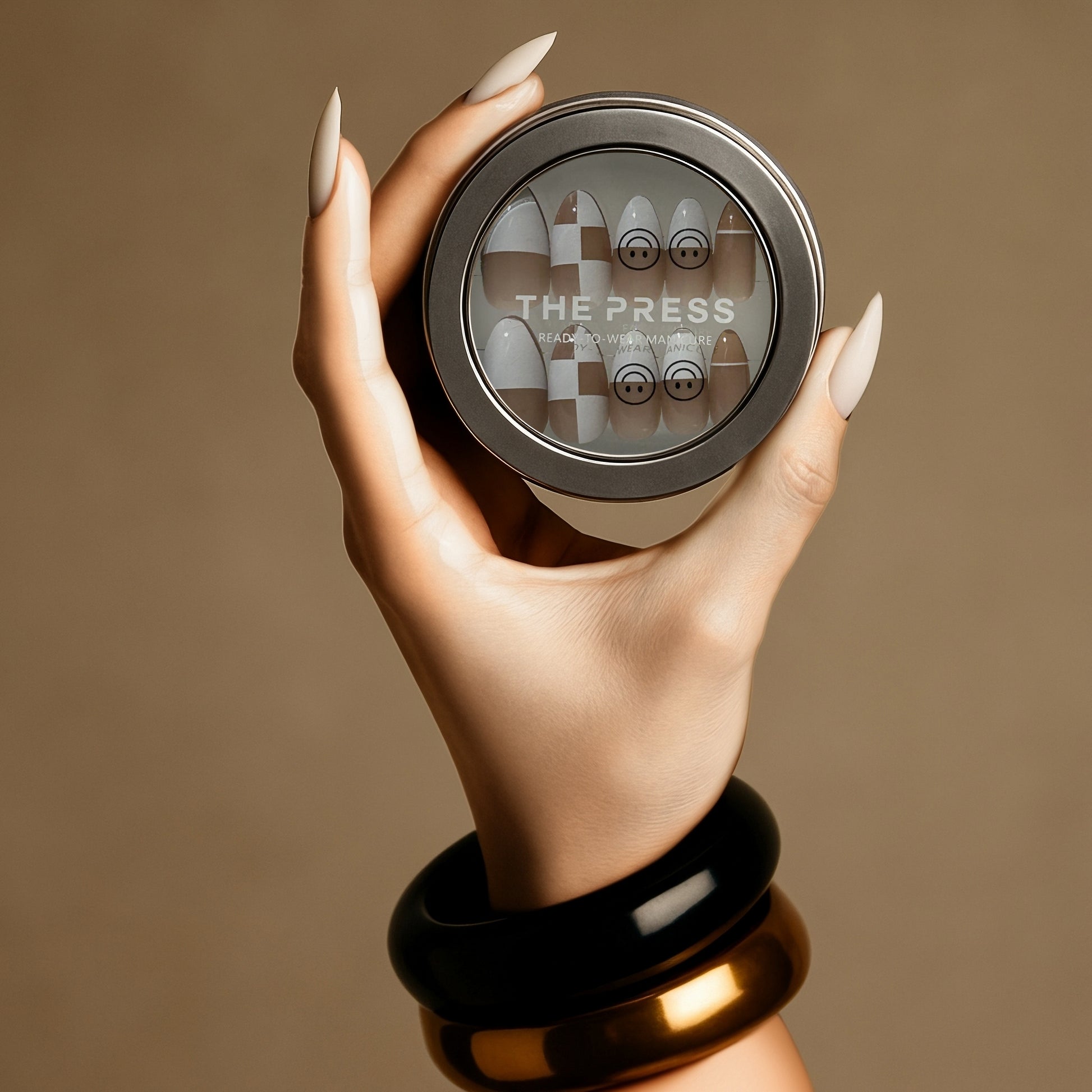 STEP 6: Touch up and reshape your Read-to-Wear Manicure using the file included or a nail clipper. Tip: THE PRESS Nails can be filed from any side, including the cuticle area, if you want to shorten the length of the nails without losing the tip design.