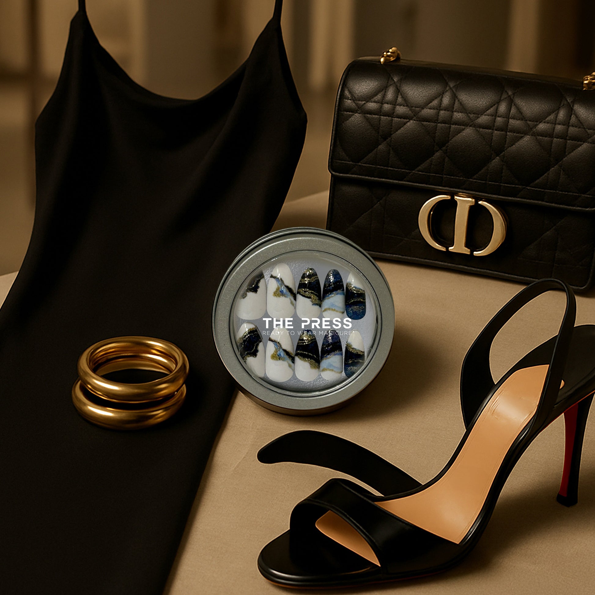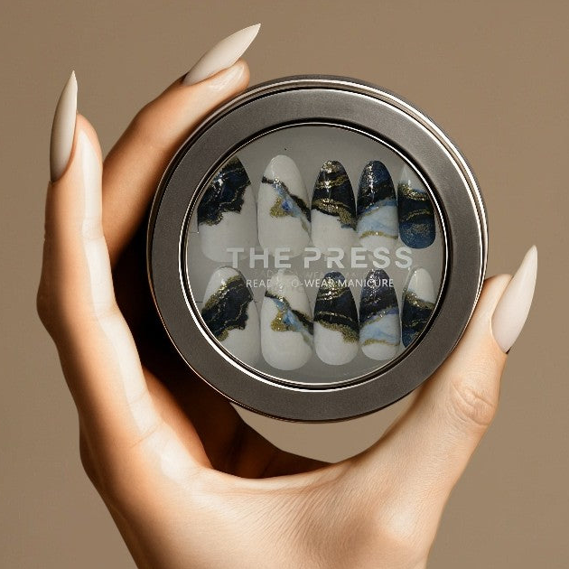 STEP 6: Touch up and reshape your Read-to-Wear Manicure using the file included or a nail clipper. Tip: THE PRESS Nails can be filed from any side, including the cuticle area, if you want to shorten the length of the nails without losing the tip design.