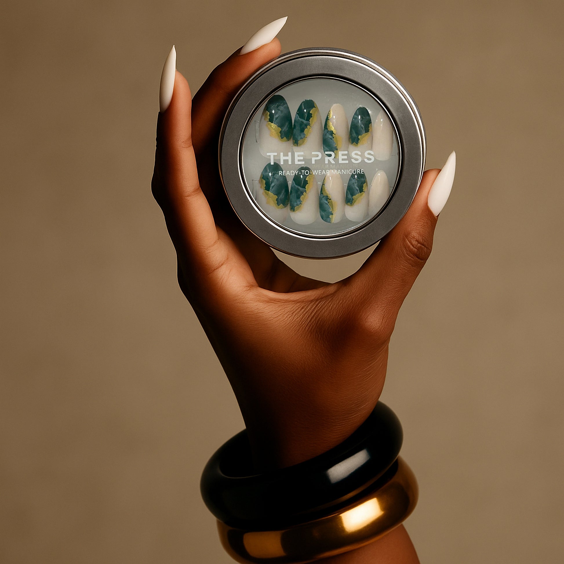 STEP 6: Touch up and reshape your Read-to-Wear Manicure using the file included or a nail clipper. Tip: THE PRESS Nails can be filed from any side, including the cuticle area, if you want to shorten the length of the nails without losing the tip design.