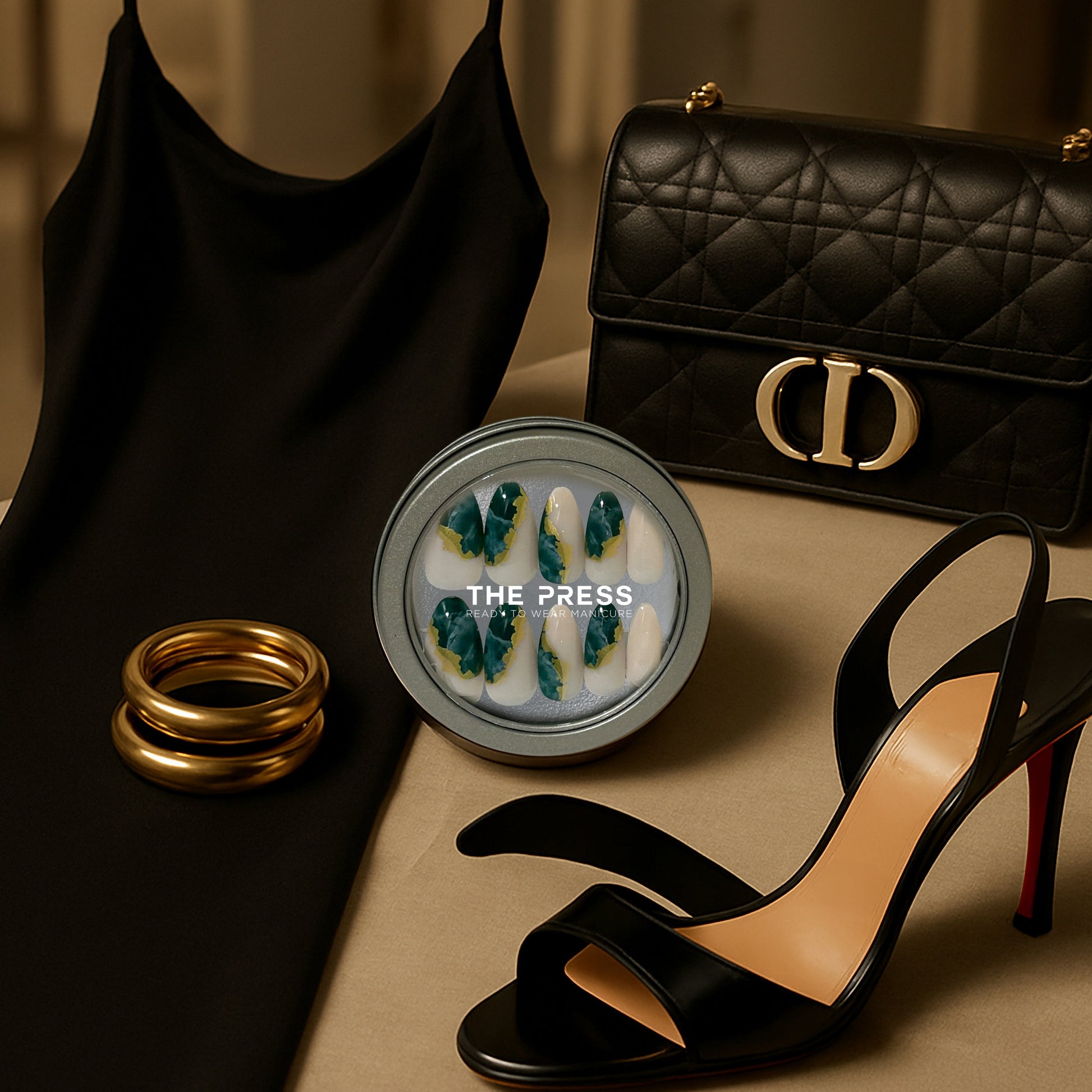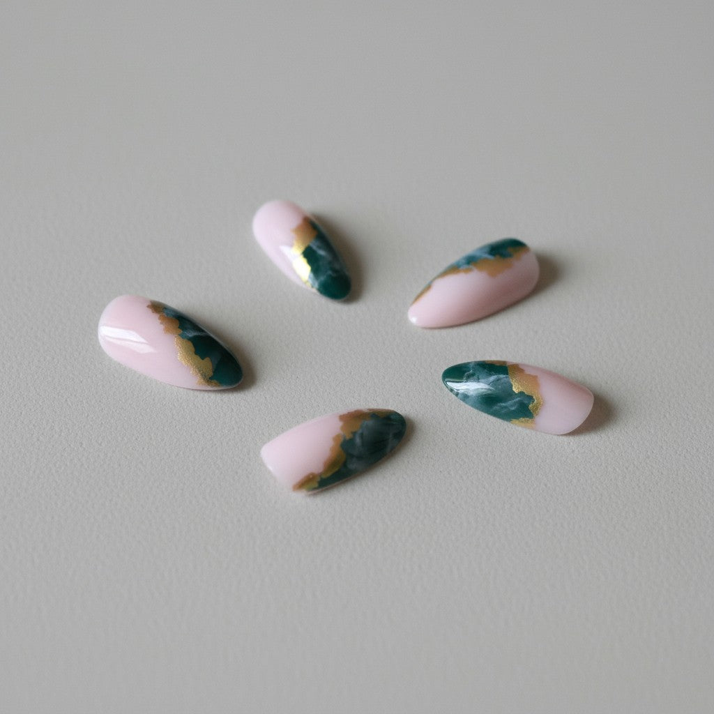Turquoise & Gold Foil Ready-to-Wear Manicure (press-on nails).