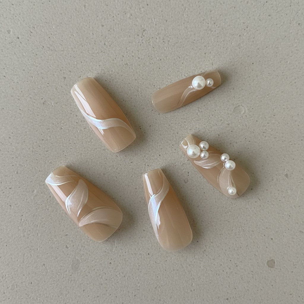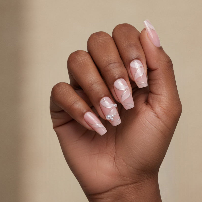 Abstract White Flower with Pearl Embellishment Ready-to-Wear Manicure (press-on nails).