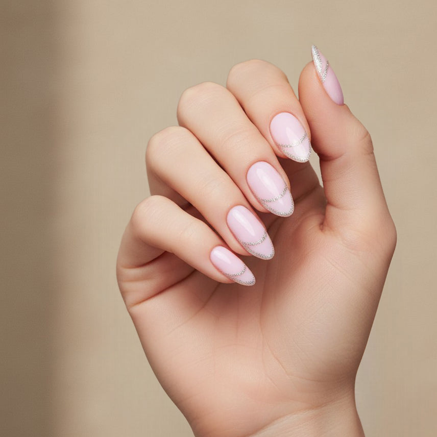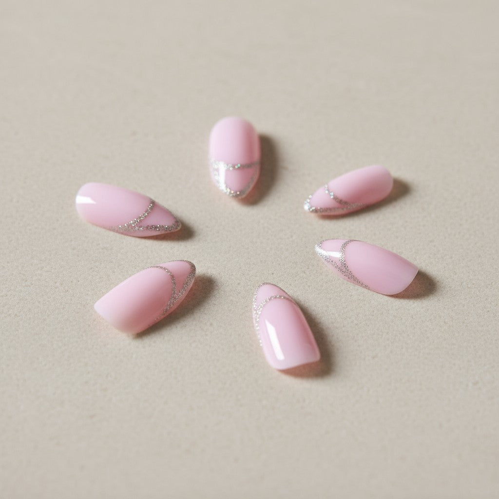 Silver French Outline Ready-to-Wear Manicure (press-on nails).