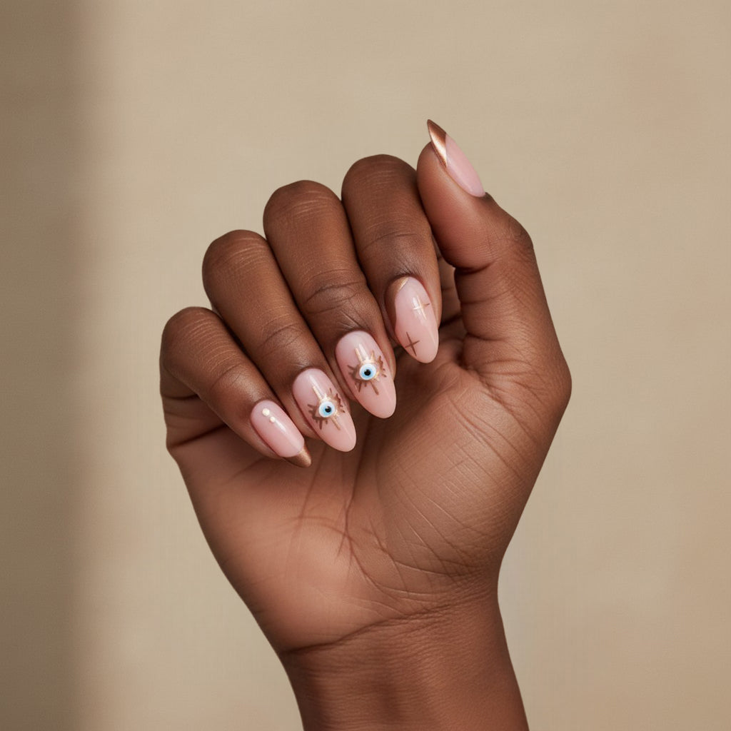 Nude Evil Eye Protection Ready-to-Wear Manicure. Press on nails. 24 pc.