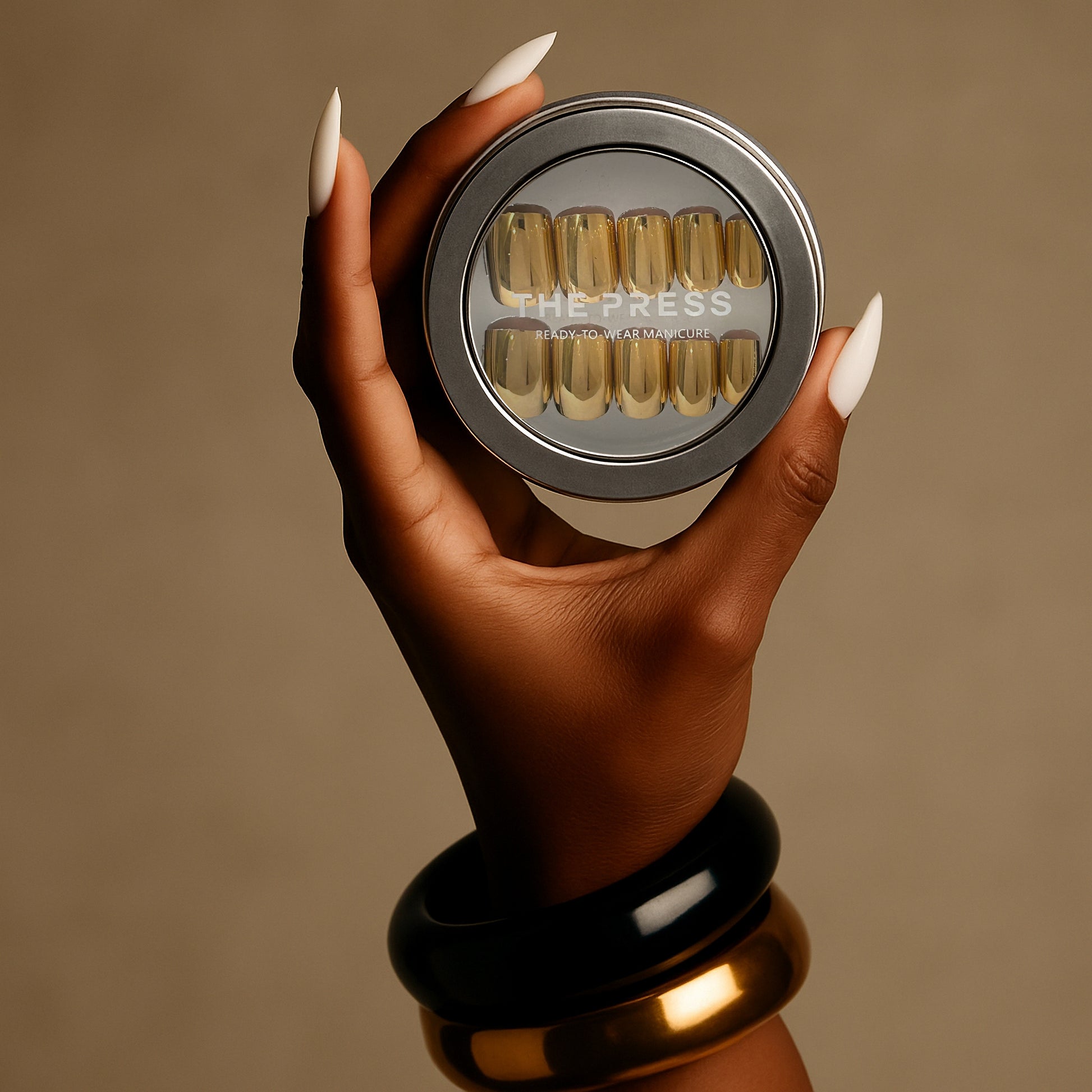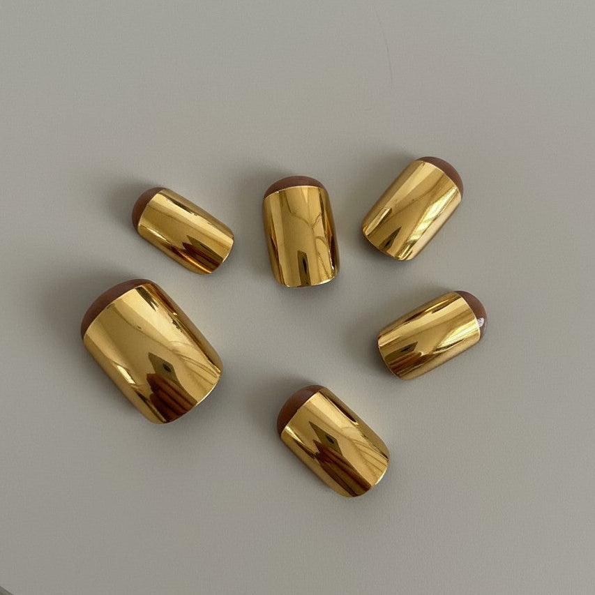 Square Gold Metallic Ready-to-Wear Manicure (press-on nails).