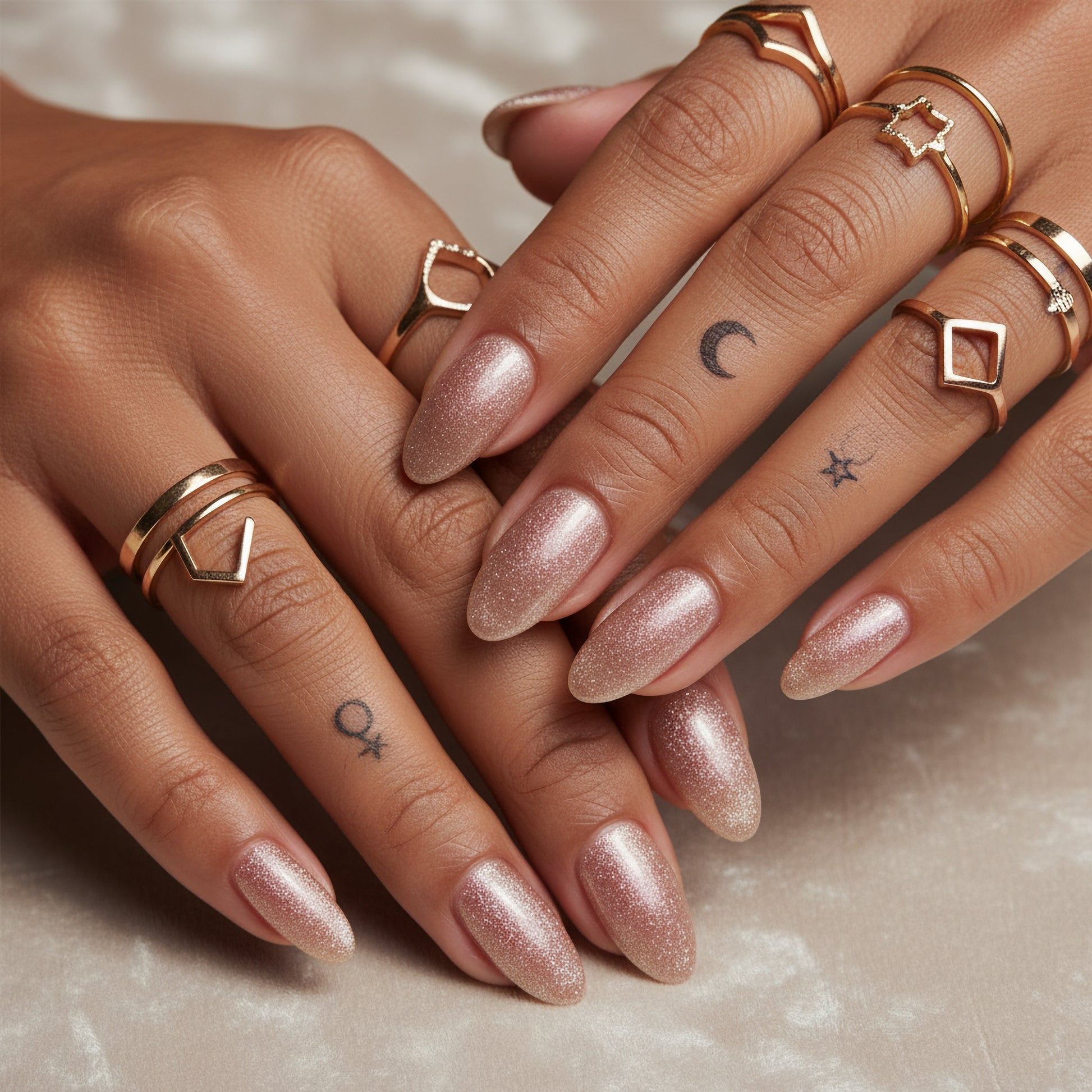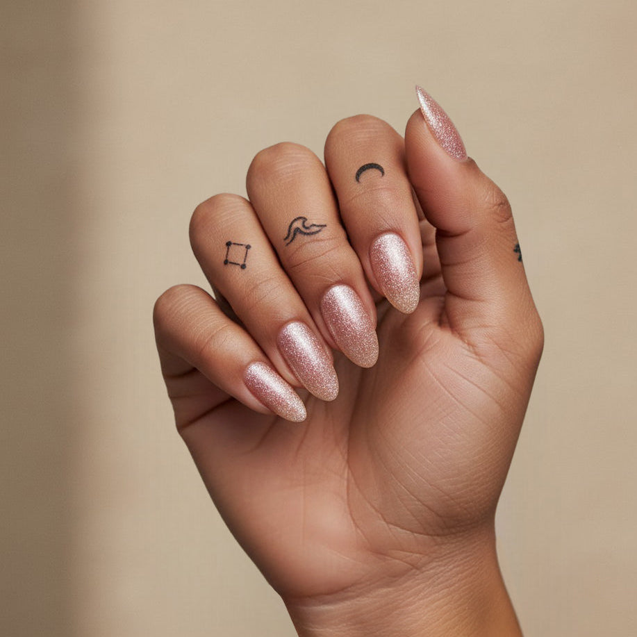 Gold Shimmer Almond Ready-to-Wear Manicure (press-on nails).