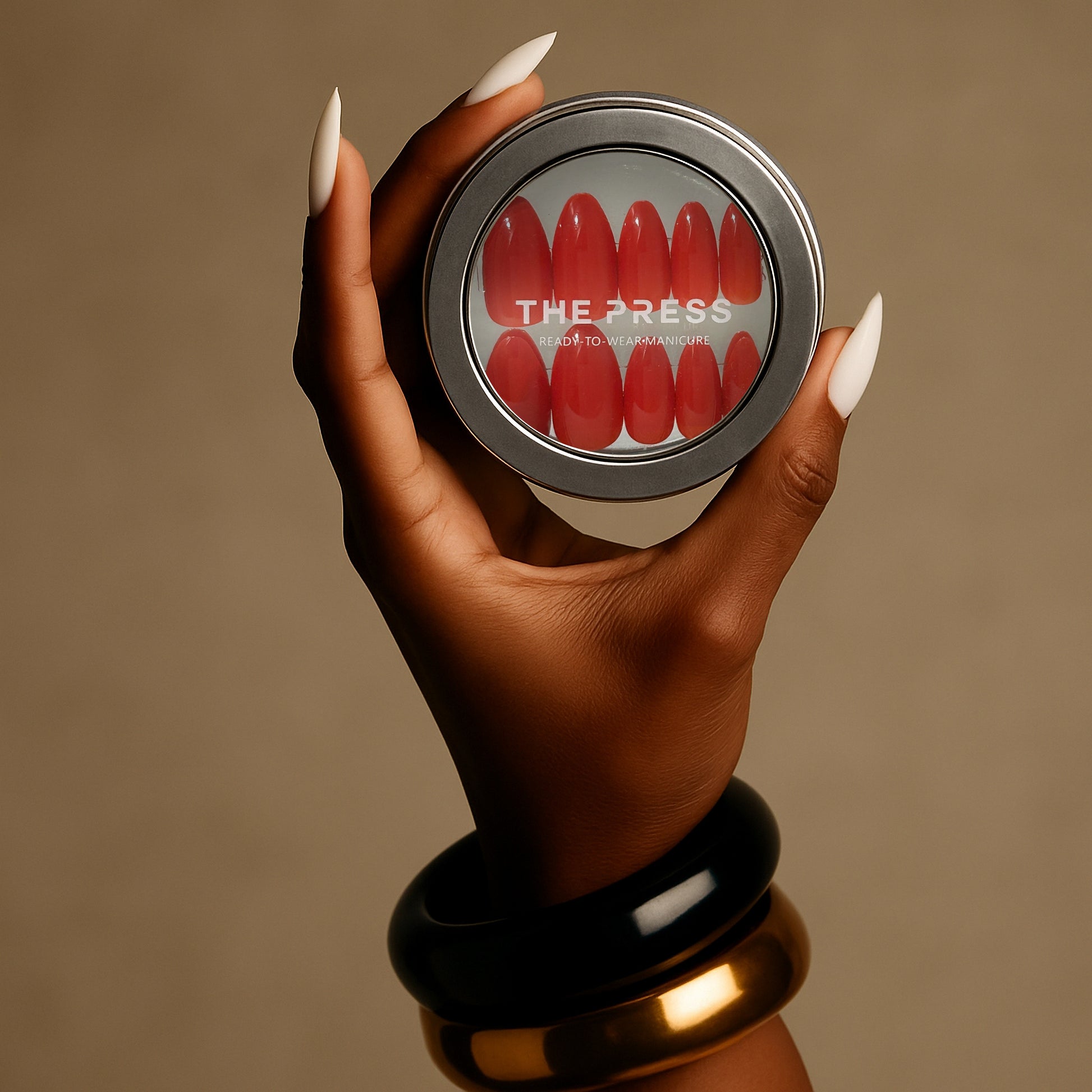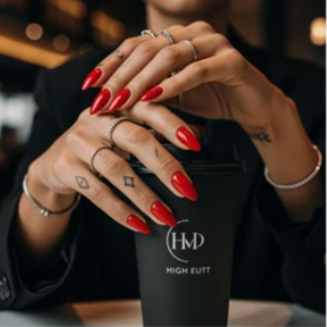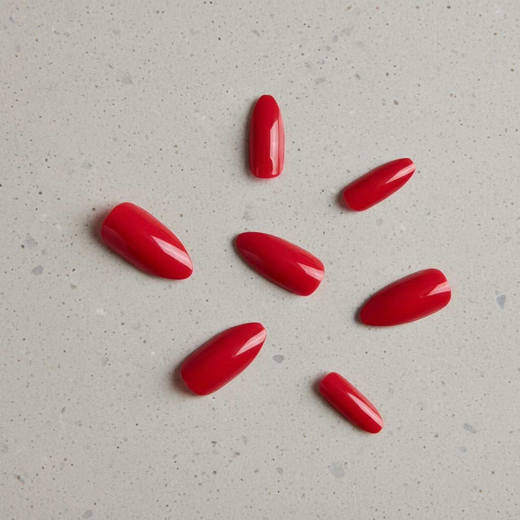 Traditional Red Almond Ready-to-Wear Manicure (press-on nails).