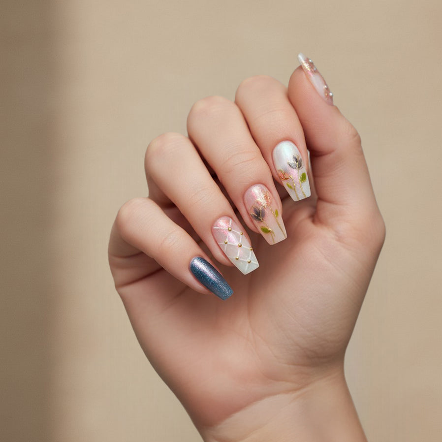 Abstract hand-painted flower Ready-to-Wear Manicure (press-on nails).