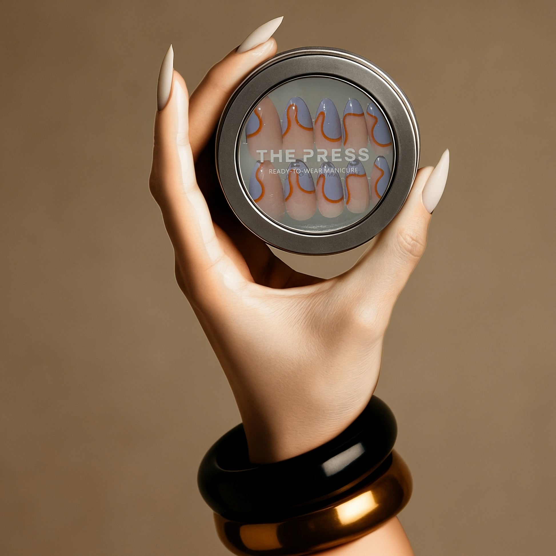 STEP 6: Touch up and reshape your Read-to-Wear Manicure using the file included or a nail clipper. Tip: THE PRESS Nails can be filed from any side, including the cuticle area, if you want to shorten the length of the nails without losing the tip design.