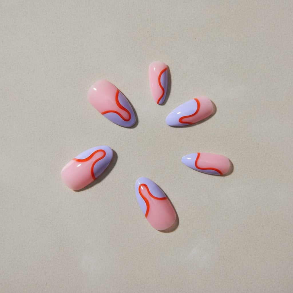 Abstract Red and Blue French Tip Ready-to-Wear Manicure (press-on nails).