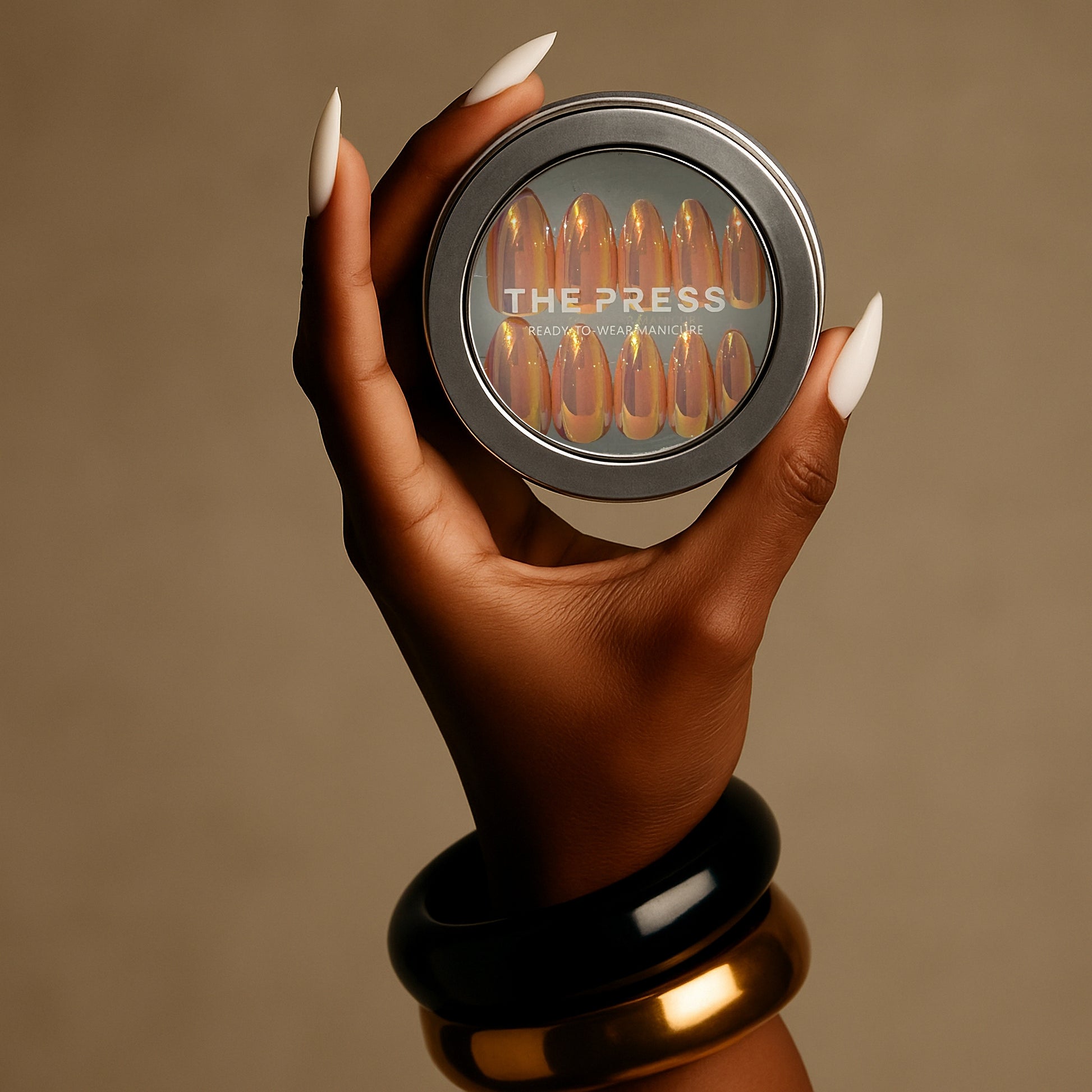 STEP 6: Touch up and reshape your Read-to-Wear Manicure using the file included or a nail clipper. Tip: THE PRESS Nails can be filed from any side, including the cuticle area, if you want to shorten the length of the nails without losing the tip design.