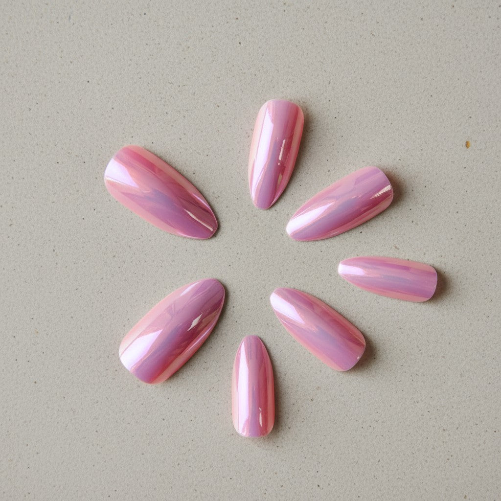 Pink Metallic Ready-to-Wear Manicure (press-on nails).