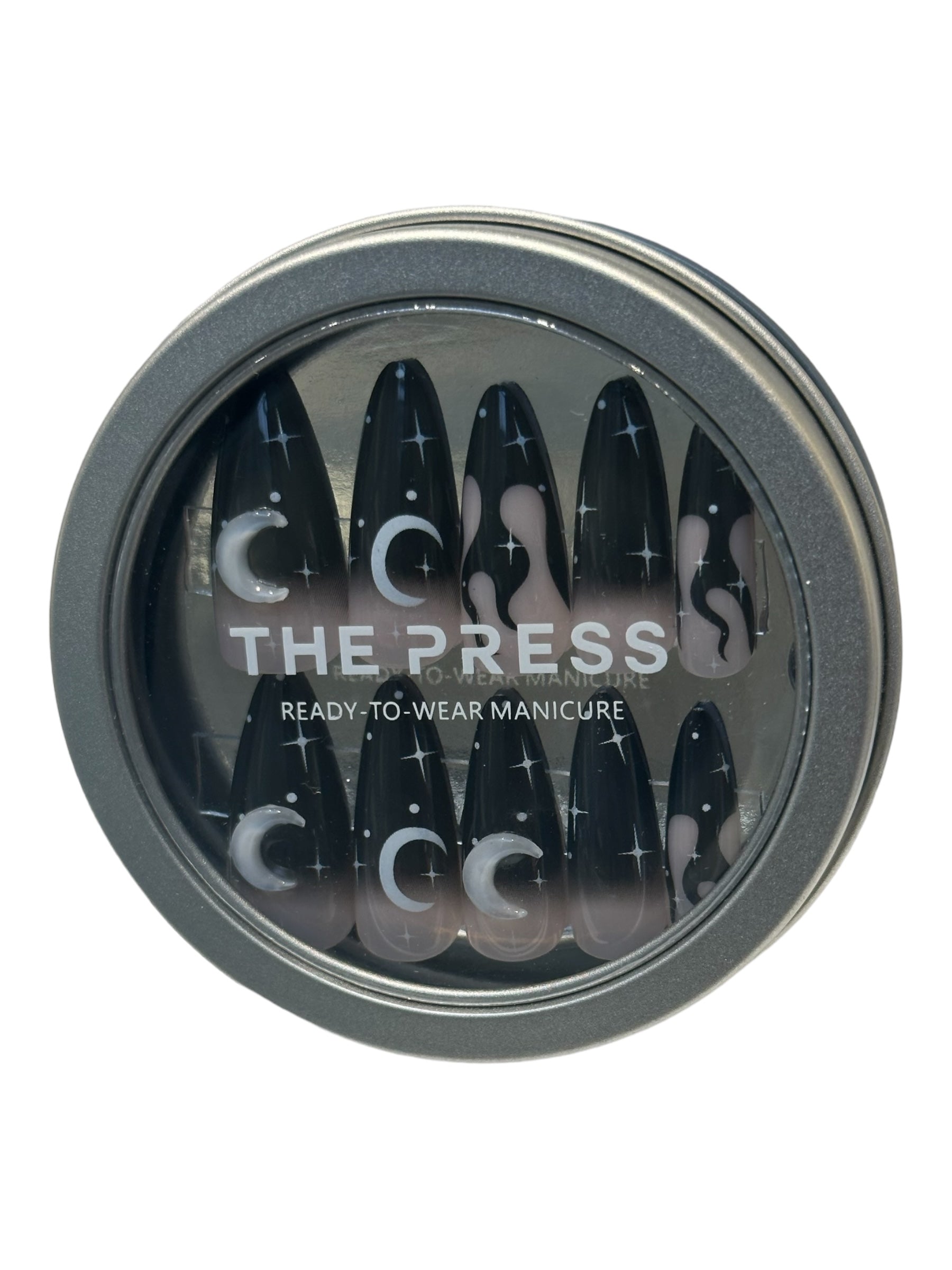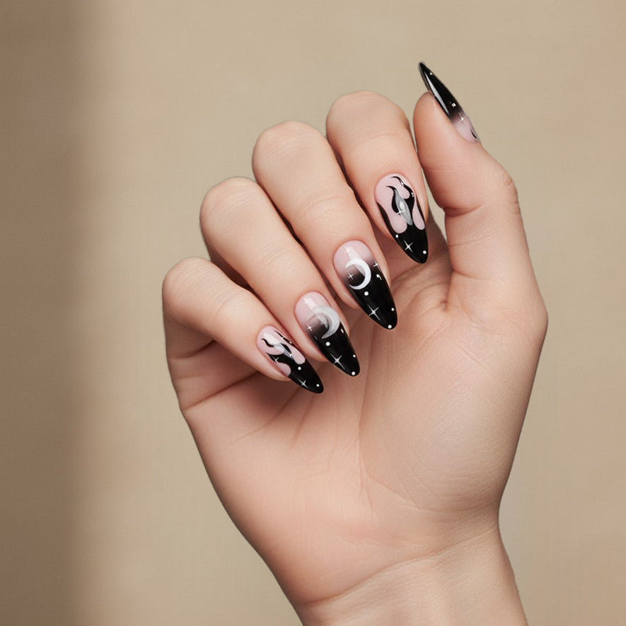 Black Ombre Night Scene Ready-to-Wear Manicure (press-on nails) with 3D moons.