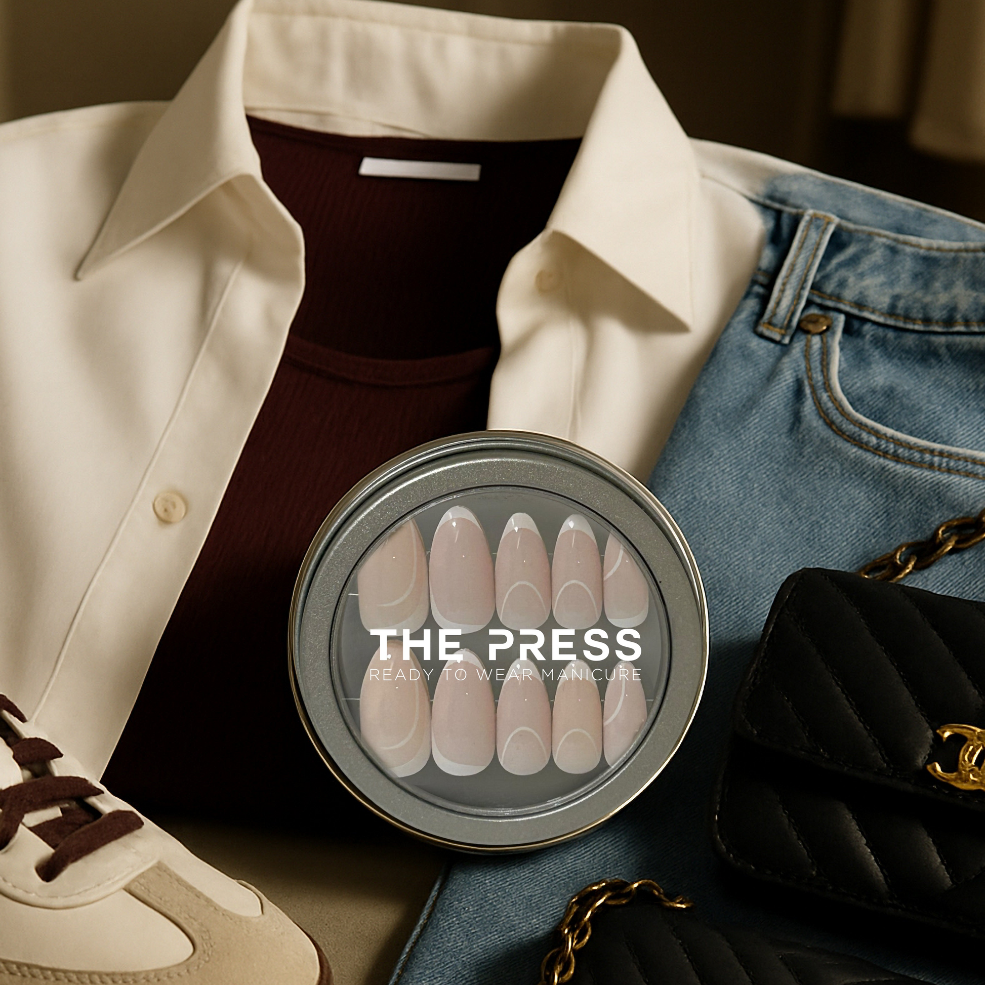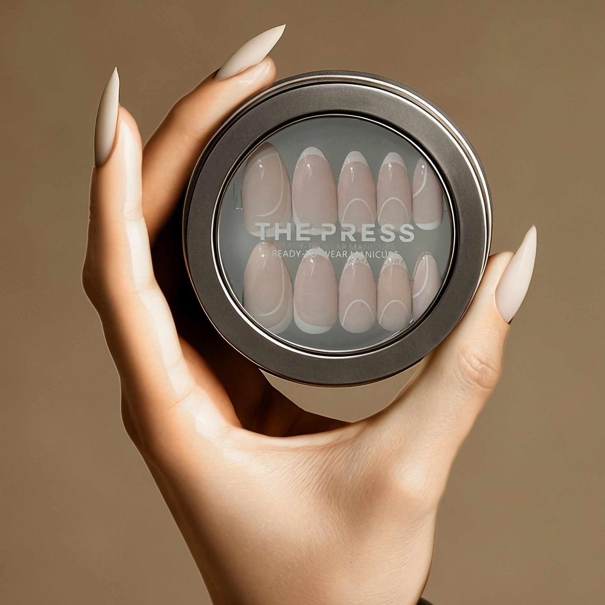 STEP 6: Touch up and reshape your Read-to-Wear Manicure using the file included or a nail clipper. Tip: THE PRESS Nails can be filed from any side, including the cuticle area, if you want to shorten the length of the nails without losing the tip design.