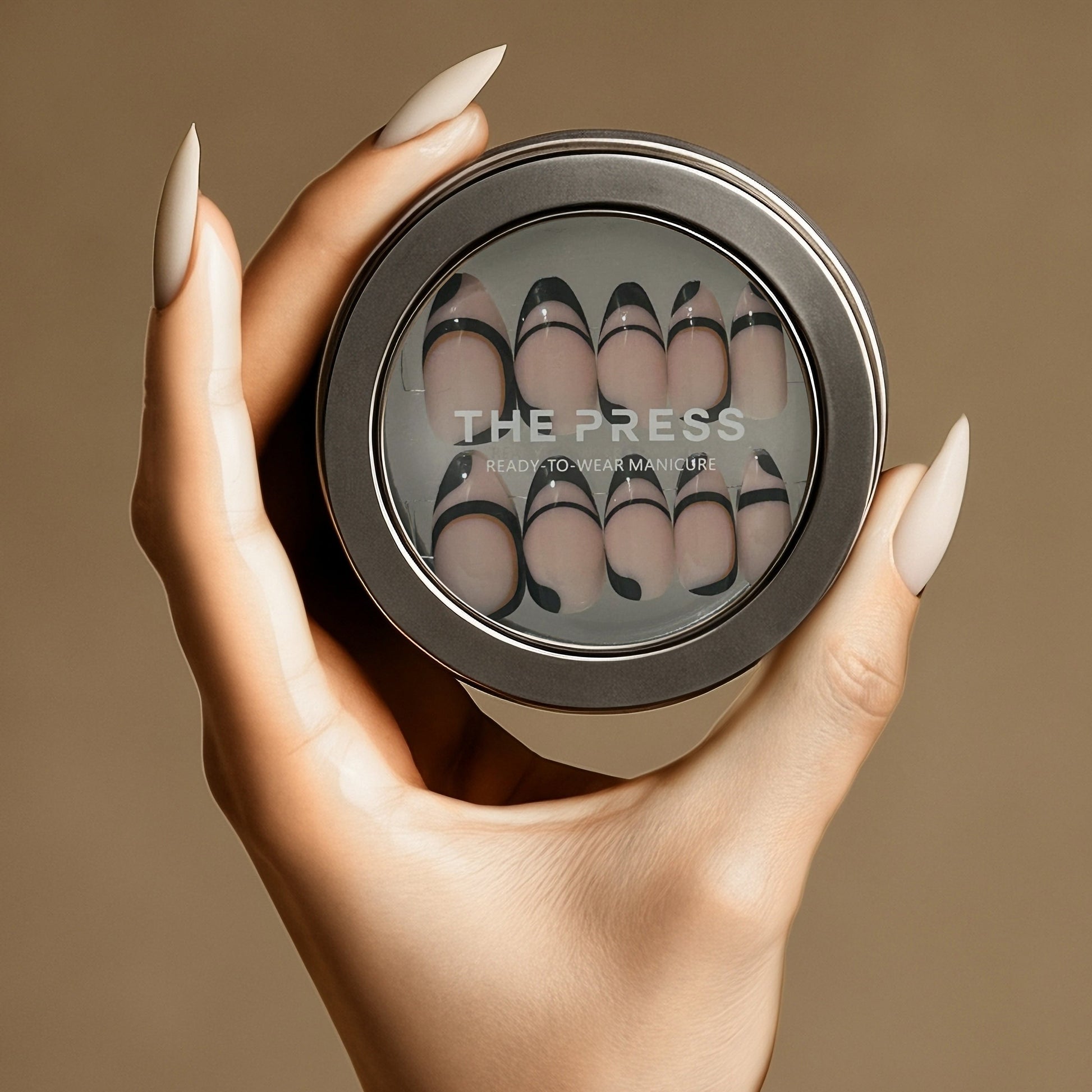 STEP 6: Touch up and reshape your Read-to-Wear Manicure using the file included or a nail clipper. Tip: THE PRESS Nails can be filed from any side, including the cuticle area, if you want to shorten the length of the nails without losing the tip design.