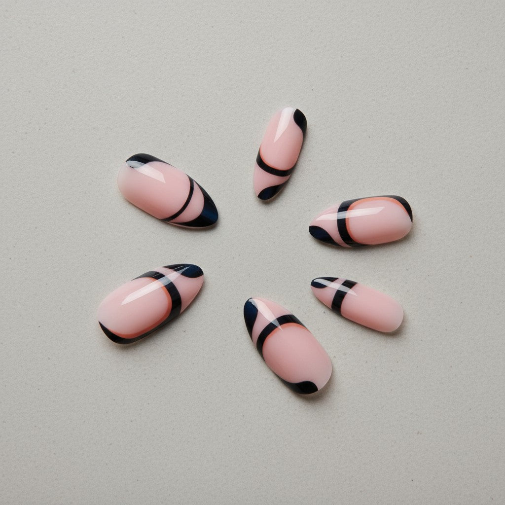 Black Swirl Ready-to-Wear Manicure (press-on nails).